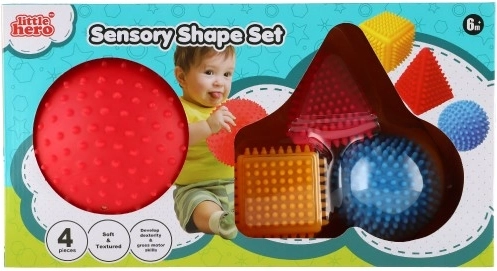 Zestaw sensorycznych figur geometrycznych LITTLE HERO zachwyci każde ciekawe świata dziecko. Różnorodne powierzchnie i wyraziste kolory stymulują zmysły, a kolczasta struktura ułatwia chwyt nawet najmniejszym rączkom. Podczas manipulowania poszczególnymi kształtami dzieci w naturalny sposób trenują koordynację ręka–oko i uczą się rozpoznawać różnice między kształtami i kolorami.
