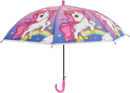 Rozjaśnij deszczowe dni tym wesołym dziecięcym parasolem z motywem jednorożca. Oferuje automatyczne otwieranie, wygodną zakrzywioną rączkę oraz trwałą konstrukcję z plastiku i metalu. Idealny do szkoły, przedszkola i na wycieczki.