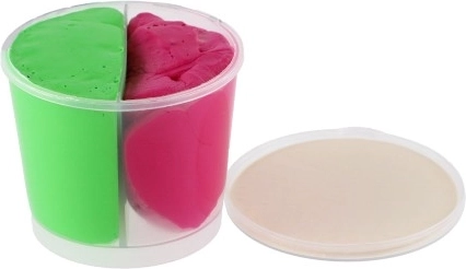 Kubeczek o wymiarach 7 × 6 × 7 cm utrzymuje masę dłużej świeżą i ułatwia przechowywanie. Mix trzech wyrazistych kolorów zachęca do eksperymentowania, mieszania i wspólnej zabawy.