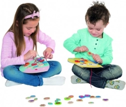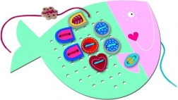 Ulubiona zabawka do rozwijania małej motoryki, wyobraźni i cierpliwości dzieci z motywami sowy i rybki. Zestaw zawiera 35 drewnianych elementów i 4 sznurówki zapewniając niekończącą się zabawę.