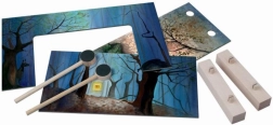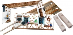 Drewno (elementy i pałeczki), karton/papier (dekoracje)