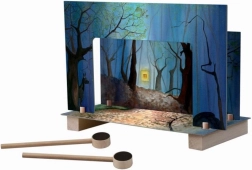 Figurki poruszają się po scenie „same” dzięki magnetycznym pałeczkom wsuwanym pod scenę – to zabawa prosta, płynna i bez sznurków.
