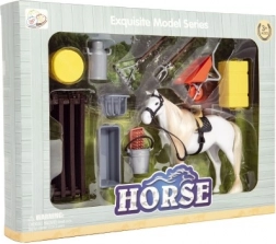 W zestawie znajduje się siodło i uzda, dzięki którym dzieci mogą odtwarzać jazdę konną oraz codzienną pielęgnację.