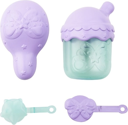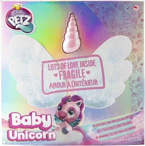 W opakowaniu znajduje się 9 tematycznych akcesoriów, z którymi rozbudzisz wyobraźnię: buteleczka do karmienia, grzebyk, tęczowe skrzydła, spinki, naklejki, breloczek oraz certyfikat adopcji. Dostępne są 3 wersje kolorystyczne (biała, różowa, niebieska), więc każdy mały czarodziej lub czarodziejka znajdzie coś dla siebie.