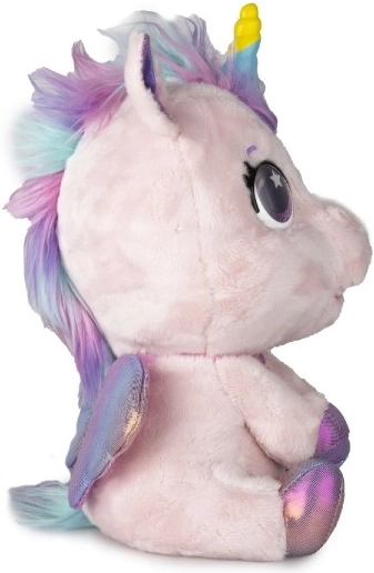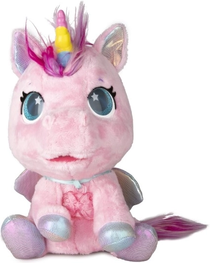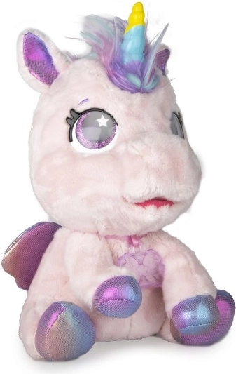 Interaktywny pluszowy kucyk, który stanie się Twoim ulubionym przyjacielem. Reaguje na dotyk i opiekę ponad 30 dźwiękami i akcjami – od radosnego rżenia po delikatne mruczenie. Dzięki stopniowej przemianie w trzech magicznych fazach będziesz obserwować, jak wyrasta mu kolorowy róg, a z kucyka staje się pięknym jednorożcem.