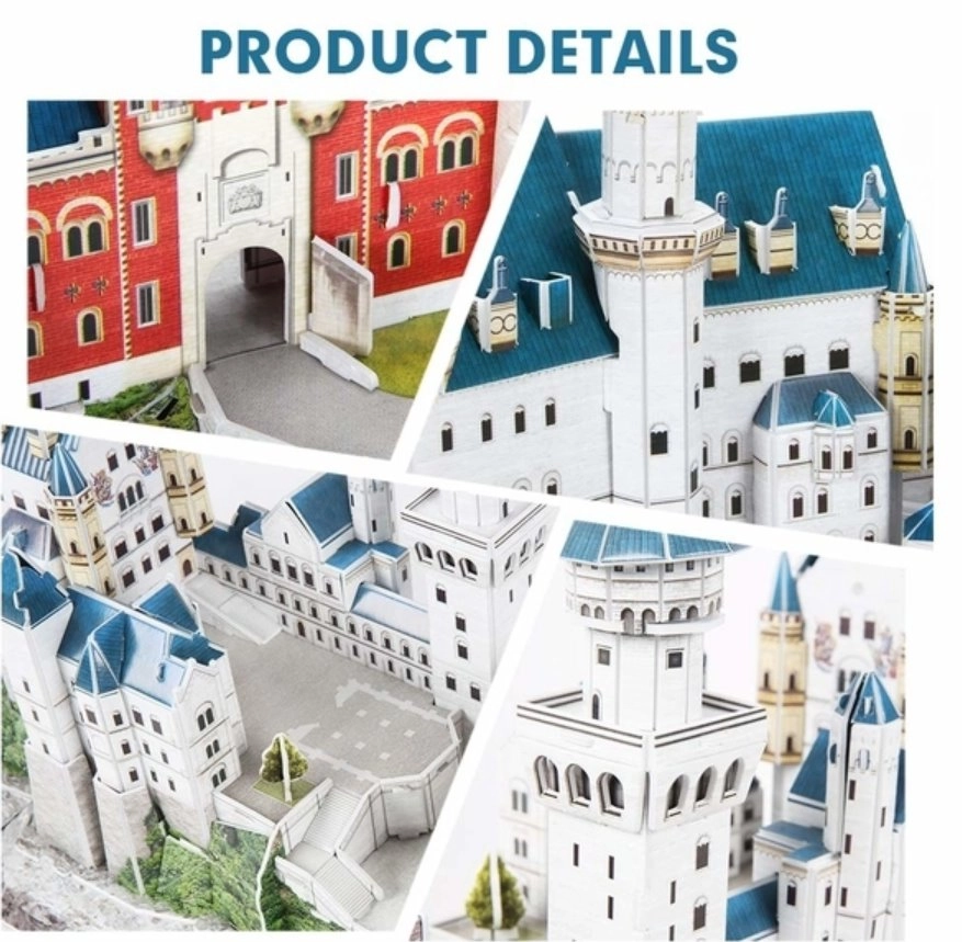Zbuduj kultowy zamek NEUSCHWANSTEIN, jeden z najsłynniejszych symboli Niemiec, wzniesiony z inicjatywy Ludwika II Bawarskiego. Puzzle 3D CUBICFUN z edycji NATIONAL GEOGRAPHIC wyróżniają się precyzyjnym wykonaniem i wysoką jakością materiałów – elementy z ok. 3 mm pianki pokryte laminowanym, zadrukowanym papierem gwarantują stabilność oraz dopracowany wygląd.