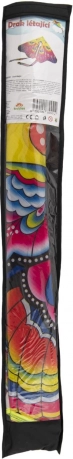 Ten kolorowy latawiec z motywem motyla wykonany jest z lekkiego, a jednocześnie wytrzymałego nylonu, dzięki czemu świetnie lata i dobrze radzi sobie na wietrze. Idealny na wspólne rodzinne chwile na łące lub w parku. Rozmiar 145 × 80 cm gwarantuje dobrą stabilność i widoczność na niebie, co docenią początkujący i młodsze dzieci.