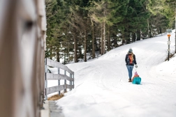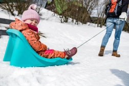 Ergonomicznie ukształtowane siedzisko z powierzchnią antypoślizgową oferuje wygodę nawet podczas dłuższego saneczkowania.