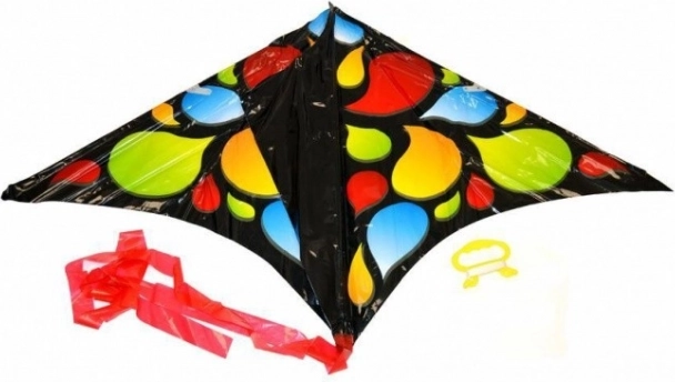 Latający smok o wymiarach 61 x 114 cm to zabawka dla dzieci i dorosłych, dostępna w dwóch kolorach: czarnym i niebieskim.