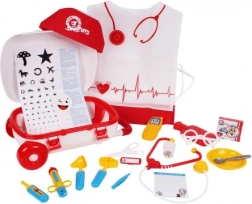 Lekarski zestaw na kółkach jest idealny dla małych lekarzy, którzy chcą opiekować się swoimi pluszowymi pacjentami lub zaprzyjaźnionymi zabawkami.