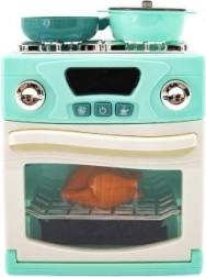 Zestaw zawiera kuchenkę, piekarnik, dwa garnki i pieczonego kurczaka dla pełniejszego doświadczenia zabawy.