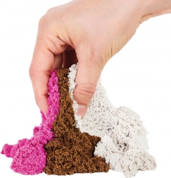 Specjalna formuła Kinetic Sand łatwo się ugniata, tnie i formuje – idealna do realistycznych gałek lodów i deserów.