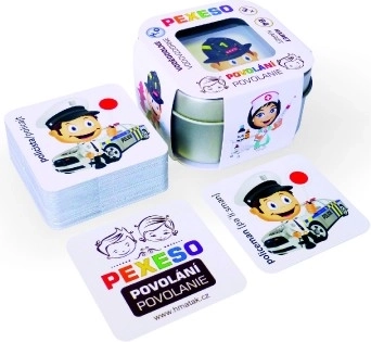 Przybliż dzieciom świat zawodów w atrakcyjny sposób. To pexeso oferuje 64 trwałe karty z ilustracjami znanych i rzadziej spotykanych profesji. Połowa kart ma czeskie i słowackie nazwy, druga połowa angielskie nazwy z wymową – idealne do pierwszego kontaktu z językiem obcym.