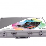 Odkryj świat barw i kreatywności z naszym Zestawem artystycznym w metalowej walizce. Ten set zawiera 79 starannie dobranych narzędzi plastycznych, w tym farby akwarelowe, kredki, pędzle, gumkę i temperówkę, które zaspokoją potrzeby zarówno początkujących, jak i zaawansowanych twórców. Organizacja i przenośność są kluczowe, a dzięki metalowej obudowie z solidnymi zatrzaskami i wygodnym uchwytem Twój materiał artystyczny zawsze będzie na właściwym miejscu.