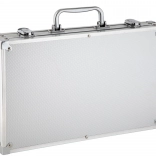 Ta metalowa walizka jest wyposażona w solidny uchwyt i bezpieczne zatrzaski, co umożliwia łatwe przenoszenie i bezpieczną organizację wszystkich przyborów.