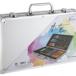 Zestaw zawiera 79 elementów, w tym farby akwarelowe, kredki, pędzle, gumkę i temperówkę do wszelkich potrzeb artystycznych.