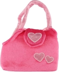 Wesoła różowa torebka z serduszkami i miękki piesek z kokardką ucieszą każdą małą miłośniczkę zwierząt.