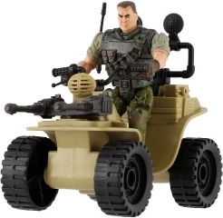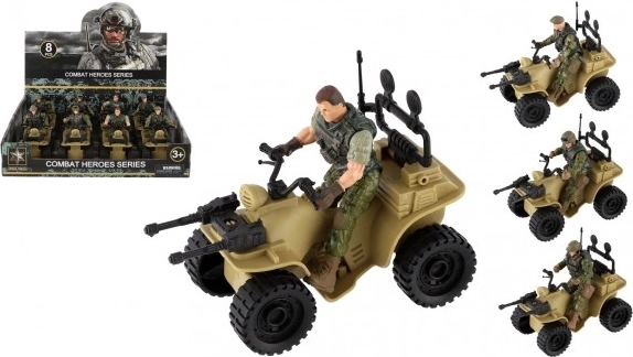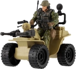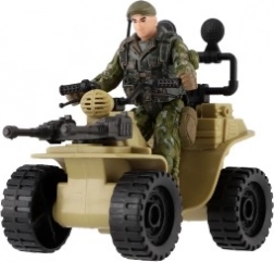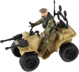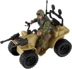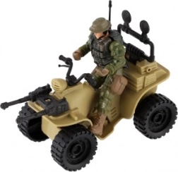 Ten czterokołowiec oferuje realistyczne detale włącznie z kamuflażowym ubraniem żołnierza i dużymi czarnymi oponami.