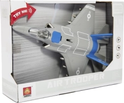Ten plastikowy myśliwiec jest idealną zabawką dla małych żołnierzy i pilotów. Wykonany z wysokiej jakości materiałów, przeznaczony dla dzieci od 3 lat. Dzięki swoim realistycznym efektom świetlnym i dźwiękowym dostarcza mnóstwo zabawy.