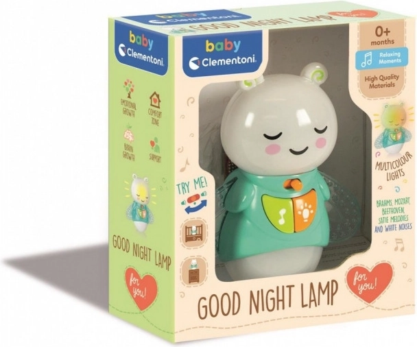 Urocza lampka nocna BABY CLEMENTONI z motywem muchy zapewnia dzieciom spokojne zasypianie i delikatne, kojące oświetlenie. Dzięki bezpiecznej, plastikowej konstrukcji i zasilaniu na 3× baterie AAA idealnie sprawdzi się w pokoju dziecięcym i w podróży. Dzieci pokochają ją jako wiernego nocnego towarzysza.