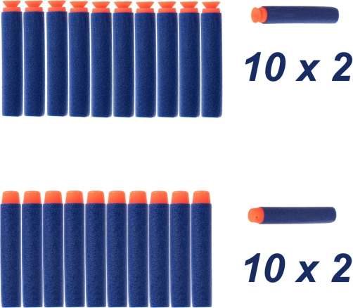 - Zestaw zawiera: karabin, 20× nabój z przyssawką, 20× klasyczny nabój