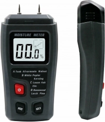 Urządzenie jest bardzo lekkie i kompaktowe, dlatego jego używanie jest bardzo proste. Czytelny wyświetlacz LCD pokazuje poziom wilgotności drewna w procentach dla wybranego gatunku drzewa.