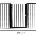 Praktyczna bramka zabezpieczająca do kominka chroni dzieci i zwierzęta domowe przed gorącą powierzchnią i otwartym ogniem. Dzięki pięciu segmentom na zawiasach łatwo dopasujesz ją do przestrzeni, ma łatwy montaż do ściany, zabezpieczenie przed przypadkowym otwarciem i jest kompatybilna z większością kominków. Solidna stalowa konstrukcja w czarnym kolorze, całkowita szerokość 304 cm i wysokość 74,5 cm zapewniają niezawodną ochronę w salonie.