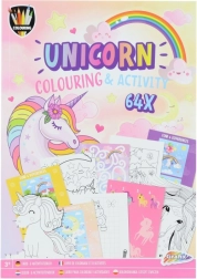 Książka pełna kolorowanek i aktywności z motywem Jednorożców, która przyniesie zabawę rysowaniem, kolorowaniem i naklejaniem naklejek na 64 stronach.