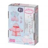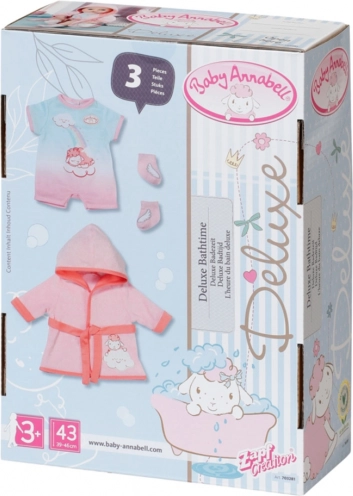 Pozwól swojej Baby Annabell przeżyć magiczne chwile z tym stylowym szlafrokiem i piżamką. Szlafrok jest ozdobiony skrzydełkami, co czyni go nie tylko modnym, ale i wygodnym dodatkiem do zabawy. Pod szlafrokiem lalka nosi krótki pajacyk z nadrukiem owieczki korzystającej z tęczowego prysznica. Aby stópki lalki były przyjemnie ciepłe, zestaw zawiera także różowe skarpetki z obrazkami skrzydełek.