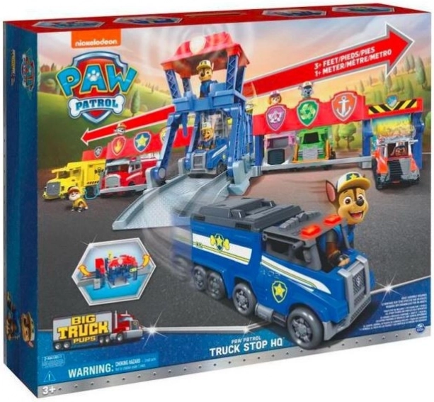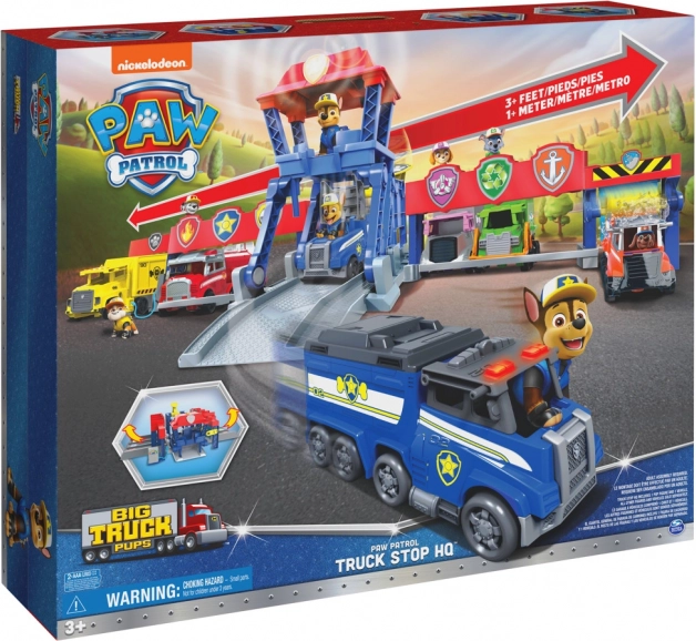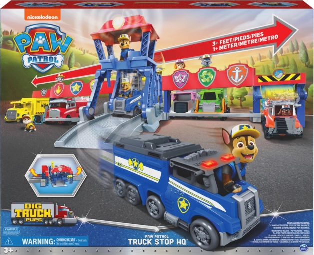 Zestaw zawiera Chase’a w jego nowej dużej ciężarówkowej wersji. Możesz posadzić Chase’a na siedzeniu kierowcy, wycelować za pomocą wyrzutni i naciskając przycisk w centrum sterowania uruchomić akcję. Naciśnięcie odznaki Psiego Patrolu na dachu jednostki sterującej aktywuje dźwiękowe i świetlne efekty, które dodają jeszcze więcej zabawy i napięcia podczas odgrywania ulubionych momentów z serialu.