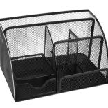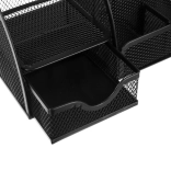 Utrzymaj porządek na biurku dzięki kompaktowemu i wytrzymałemu organizerowi biurkowemu z metalowej siatki w eleganckim czarnym kolorze. Oferuje 6 przegródek, praktyczną wysuwaną szufladę i sprytny podział na długopisy, zakreślacze, karteczki samoprzylepne, spinacze i nożyczki – idealny do biura, domowego gabinetu i do nauki.