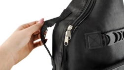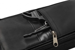 Dwie przednie kieszenie: górna na drobiazgi (kostki, kapodaster, struny), dolna na nuty lub zeszyty w formacie A4.