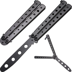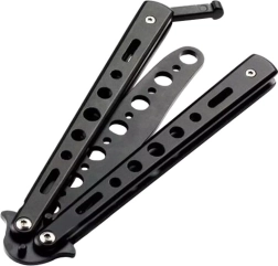 Odkryj zabawny i bezpieczny sposób na trening trików balisong. Ten motylek ma stępione ostrze i solidną, stalową konstrukcję ze stali nierdzewnej, dzięki czemu nadaje się do codziennych ćwiczeń bez ryzyka skaleczenia. Otwiera się i zamyka płynnie jednym ruchem nadgarstka.