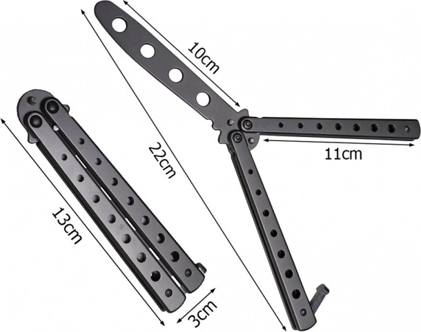 Bezpieczny treningowy motylek z tępym ostrzem ze stali nierdzewnej do nauki trików i flipów. Dzięki blokadzie przed przypadkowym otwarciem oraz kompaktowym wymiarom mieści się w kieszeni i jest idealny dla początkujących i zaawansowanych.
