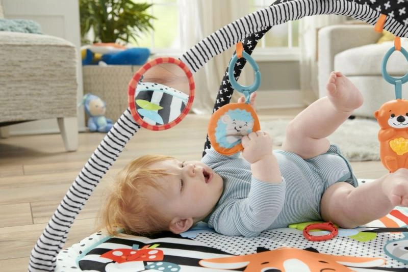 Wraz z rozwojem dziecka pałąki łatwo zdejmiesz, tworząc przestronną powierzchnię do czasu na brzuszku. Wysoki kontrast kolorów wspiera wczesny rozwój wzroku, powierzchnia jest miękko wyściełana dla komfortu i trwała do codziennego użytkowania.