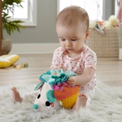 Szeleszczący brzuszek, niespodziewana melodyjka w środku i piszczący nosek utrzymują uwagę maluszka i wspierają rozumienie przyczyn i skutków.