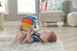 Uroczy tęczowy jeżyk od Fisher-Price to mięciutka sensoryczna zabawka dla niemowląt z 8 różnymi fakturami i 3 unikalnymi dźwiękami – szeleszczący brzuszek, niespodziewana melodyjka w środku oraz piszczący nosek. Wspiera małą motorykę, wrażenia dotykowe i umożliwia łatwe doczepienie dodatkowych zabawek do zabawy w domu i w podróży.