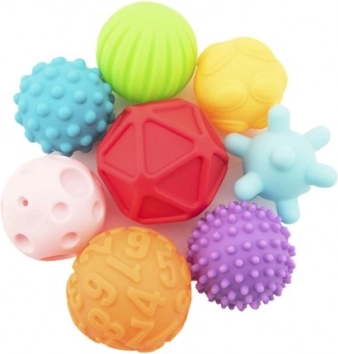 Ten zestaw teksturowanych piłeczek jest idealny dla dzieci od sześciu miesięcy. Wykonane są z silikonowego materiału, który jest przyjemny w dotyku i ułatwia chwytanie. Różne faktury na powierzchni piłeczek stymulują percepcję sensoryczną.