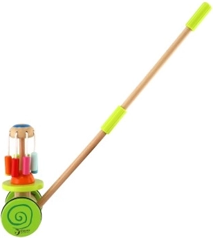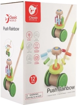 Drewniany kolorowy pchacz Classic World to idealna zabawka dla małych odkrywców, którzy uczą się chodzić. Pchacz wyposażony jest w kolorową karuzelę, która obraca się i wydaje przyjemne dźwięki, przyciągając uwagę dziecka i zachęcając do chodzenia.