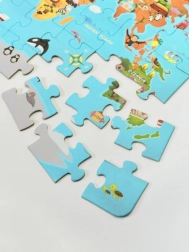 Puzzle zawiera jaskrawe kolory, które przyciągają uwagę i ułatwiają dzieciom orientację na mapie świata.