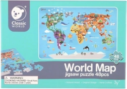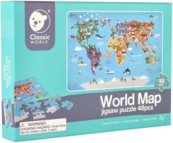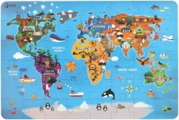 Dzieci mogą odkrywać każdy zakątek świata dzięki temu wspaniale ilustrowanemu drewnianemu puzzle. Składając poszczególne elementy, nauczą się rozpoznawać poszczególne kontynenty i oceany.