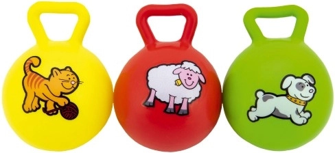 Kot, piesek czy owieczka na kolorowych piłeczkach przyciągają uwagę i wspierają percepcję wzrokową.
