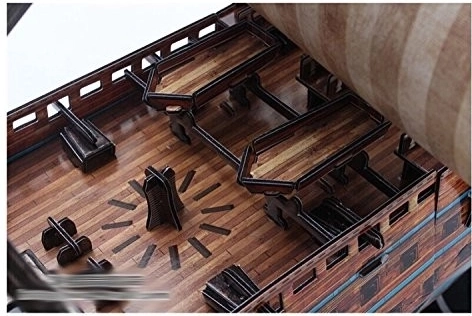 Szczegółowe pokłady z ławami i stolikami podkreślają rzemieślniczną jakość modelu i ucieszą każdego miłośnika replik okrętów.