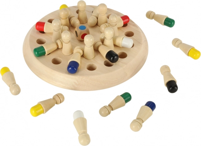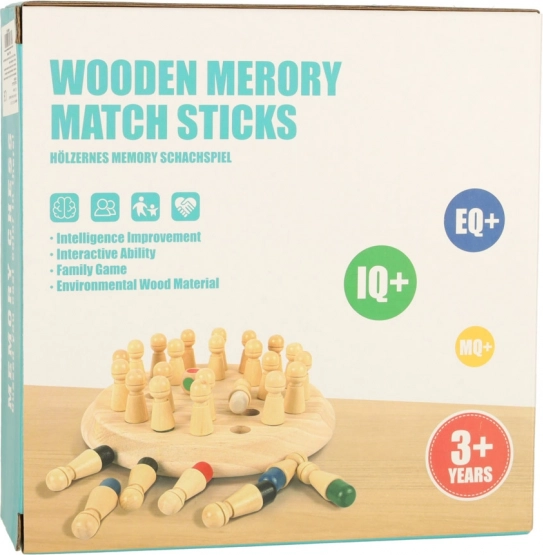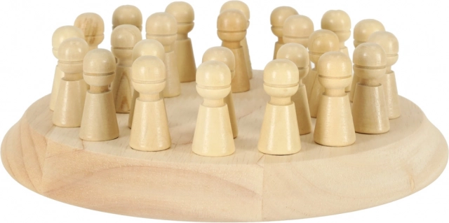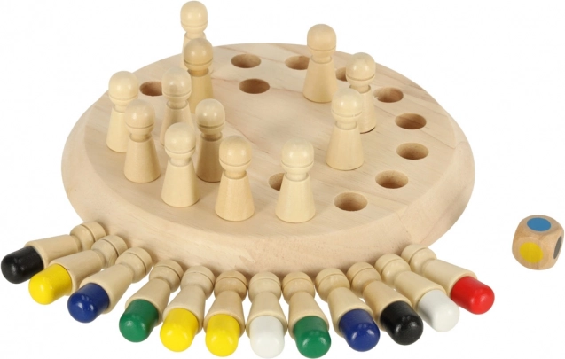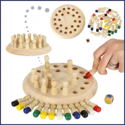 Ta drewniana gra pamięciowa łączy proste zasady z sprytnym treningiem mózgu. Gracze najpierw zapamiętują kolory kołeczków, następnie je odwracają i zgodnie z rzutem kostką szukają właściwego koloru. Punkty zdobywa ten, kto pamięta najlepiej. Gra rozwija koordynację ręka–oko, motorykę małą oraz koncentrację.