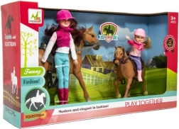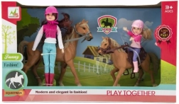 Ten wspaniały zestaw to idealny wybór dla każdego dziecka, które kocha konie i marzy o zostaniu jeźdźcem. W zestawie znajdują się dwie lalki ubrane w strój jeździecki, w tym kaski, gotowe na przygody. Wysokiej jakości i trwałe materiały zapewniają, że zestaw wytrzyma intensywną zabawę.