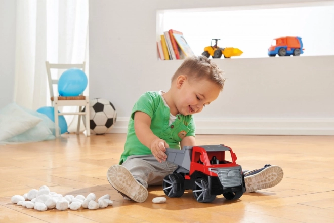 Solidna konstrukcja z bezpiecznego plastiku sprawdzi się w domu i w piaskownicy. Duże koła zapewniają stabilną jazdę w terenie.