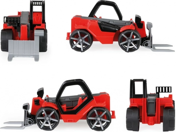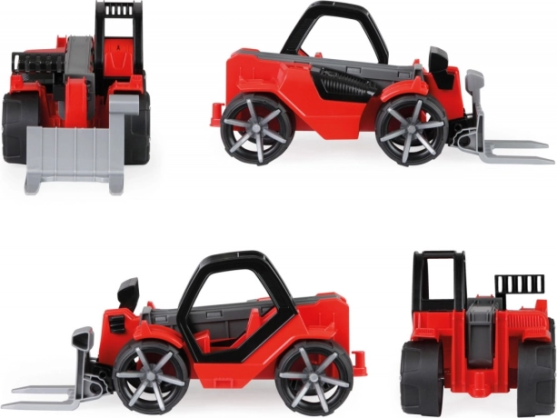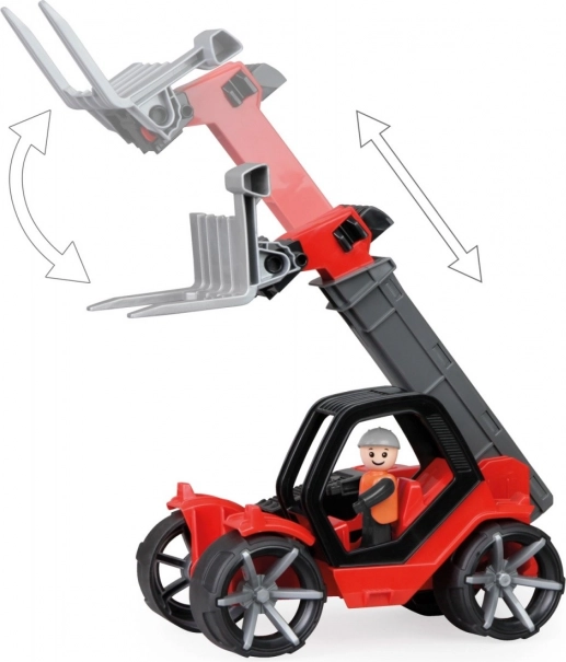 Ta teleskopowa ładowarka wykonana jest z wysokiej jakości plastiku i oferuje solidną konstrukcję, która wytrzymuje intensywną zabawę. Dzięki ogumowanym kółkom o cichej pracy doskonale nadaje się również do zabawy w pomieszczeniach. Odchylana kabina z aktywną figurką pozwala dzieciom łatwo wyobrazić sobie, że są prawdziwymi operatorami pojazdu budowlanego.