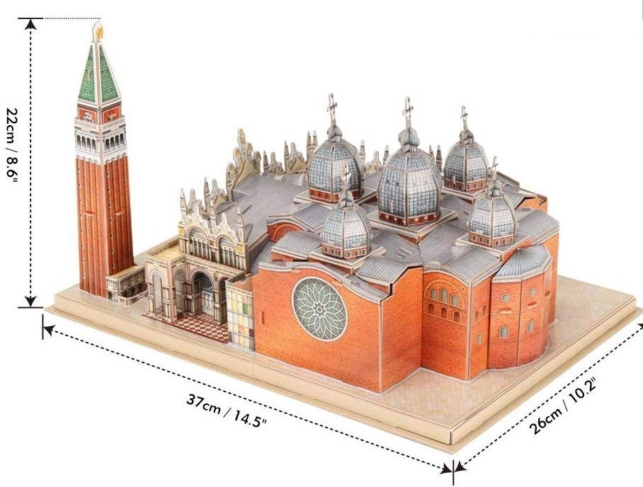 Odkryj urok Wenecji dzięki szczegółowej makiecie Placu Świętego Marka. Puzzle 3D CUBICFUN z edycji National Geographic wykonano ze specjalnej wielowarstwowej pianki pokrytej laminowanym, zadrukowanym papierem, co gwarantuje piękne kolory i długą żywotność. Elementy są wstępnie nacięte – wystarczy je łatwo wyłamać i złożyć zgodnie z instrukcją.