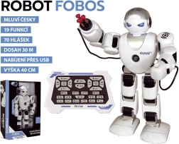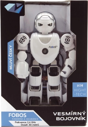 Kosmiczny robot FOBOS to interaktywny towarzysz, który mówi po czesku, reaguje na zdalne sterowanie do 30 m, umożliwia programowanie do 50 kroków, ma 19 funkcji i 70 fraz. Porusza ramionami, chodzi, obraca się, wystrzeliwuje 5 pocisków, a dzięki ładowaniu przez USB jest szybko gotowy do akcji.