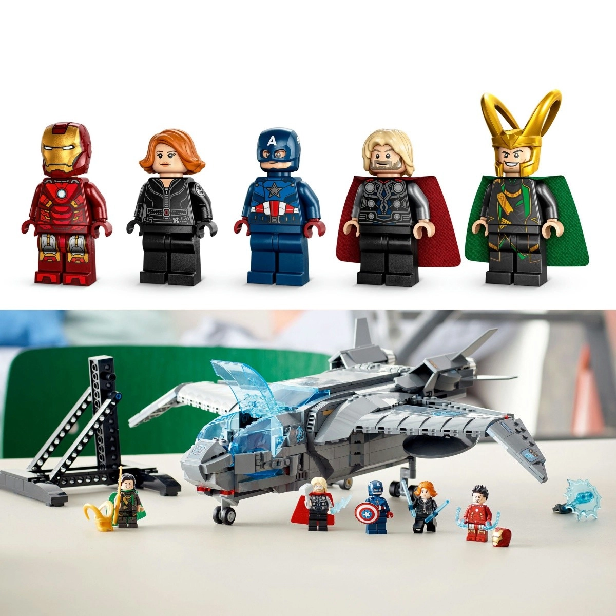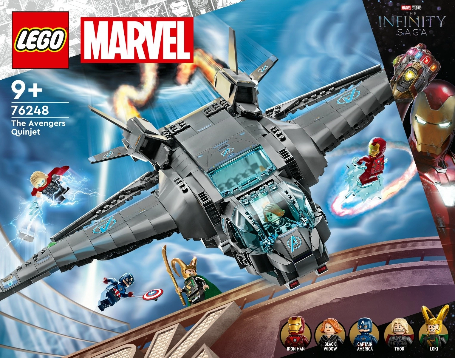 • Dopracowany statek kosmiczny – Model Myśliwiec Avengers Quinjet (76248) od LEGO® Marvel to autentyczna replika superbohaterskiego samolotu znanego z filmów Marvela • Znane postacie – Zestaw zawiera 5 kultowych minifigurek: Czarna Wdowa, Thor ze swoim młotem, Iron Man, Kapitan Ameryka ze swoją tarczą oraz Loki ze swoją laską • Buduj, baw się i prezentuj – Ta szczegółowa replika słynnego myśliwca Quinjet zachwyca otwieranym kokpitem, przestrzenią dla pasażerów i tylną sekcją, a także chowanym podwoziem i regulowanymi skrzydłami • Prezent dla fanów Marvela – Model do zbudowania Quinjet to zachwycający i trwały prezent urodzinowy, świąteczny lub na każdą inną okazję dla dzieci od 9 lat • Epickie podniebne przygody – Quinjet ma ponad 14 cm wysokości, 34 cm długości i 35 cm szerokości przy wysuniętych kołach i złożonych skrzydłach • Opcjonalna podstawka i naklejki – W zestawie znajduje się odłączana podstawka do ekspozycji oraz 2 arkusze naklejek, aby dzieci mogły ozdobić Quinjet napisem Avengers lub S.H.I.E.L.D. • Interaktywne cyfrowe budowanie – Aplikacja LEGO® Builder z instrukcjami budowania oferuje intuicyjne narzędzia powiększania i obracania, które pozwalają dzieciom wizualizować model podczas pracy • Jeszcze więcej zabawy – Szeroka gama kolekcjonerskich zestawów LEGO® Marvel, które można ze sobą łączyć, inspiruje małych konstruktorów innowacyjnymi funkcjami i nieograniczonymi możliwościami budowania i zabawy • Gwarancja jakości – Elementy LEGO® spełniają rygorystyczne branżowe standardy jakości, co oznacza, że są spójne, kompatybilne i zapewniają płynne łączenie • Gwarancja bezpieczeństwa – Elementy LEGO® upuszczamy, podgrzewamy, zgniatamy, skręcamy i analizujemy, aby zapewnić, że spełniają wymagające globalne standardy bezpieczeństwa
